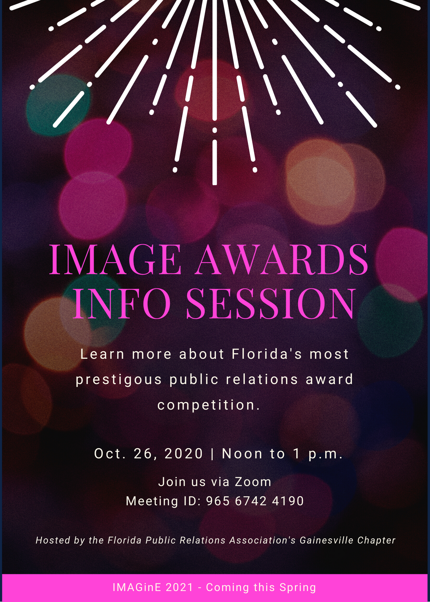Are you ready? We are! Please join us October 26 from noon-1 p.m. for the chapter’s first general information session on Image Awards and learn more about FPRA’s signature program for recognizing outstanding public relations tools and campaigns. No registration needed, but participants will have their names entered in a drawing for a $25 gift certificate. Click here for the zoom link to this training!