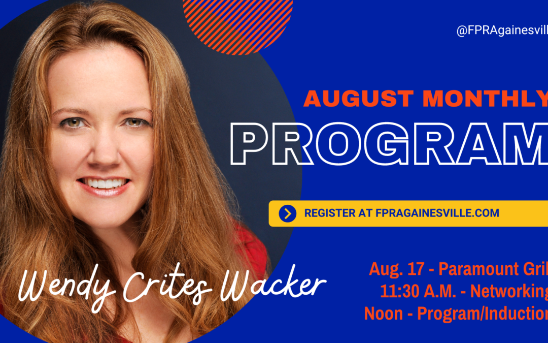 Join us Aug. 17 at Paramount Grill as we honor our chapter’s past presidents, recognize our outgoing board of directors for their contributions this year and install our 2023-2024 FPRA Gainesville Board.