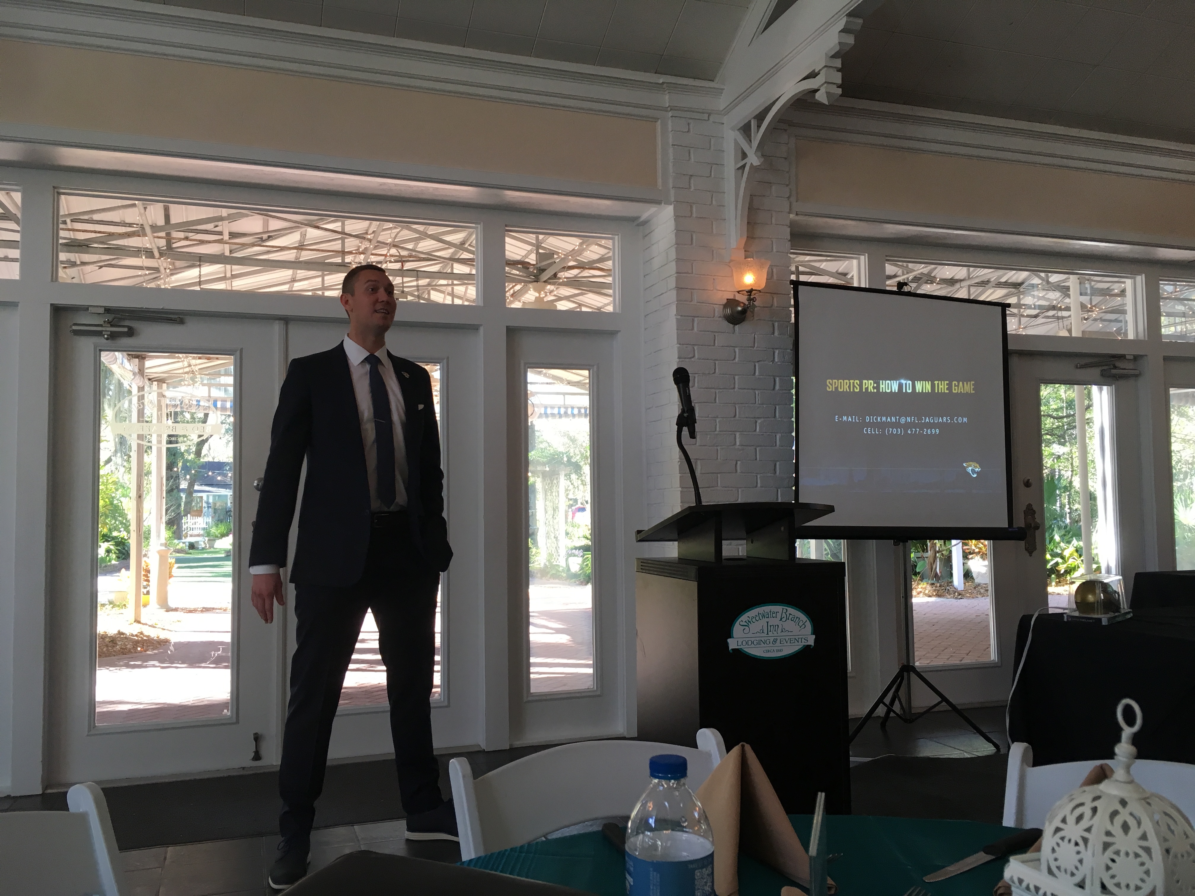 Tad’s primary responsibilities include preparing Head Coach Doug Marrone, General Manager Dave Caldwell and Quarterback Blake Bortles for all media engagements, as well as overseeing the day-to-day relations with local and national media. Tad says he is still “learning” Coach Doug Marrone and has adopted Marrone’s philosophy that “information is currency.” Tad encouraged his fellow public relations professionals to reach out and share their mission statements and philosophies with him because he always enjoys learning from others.