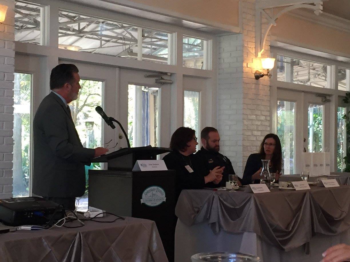 For our January luncheon event, FPRA Gainesville hosted a panel presentation on Richard Spencer’s recent controversial visit to Gainesville. Facilitated by FPRA Member Steve Shepard, the panel speakers were Officer Ben Tobias of the Gainesville Police Department, University of Florida (UF) Director of Communications Margot Winick and Melissa Lutz Blouin of UF Health Communications. Panelists shared their public relations and communications experiences while working together with other agencies and organizations to help maintain peace in the Gainesville community during the Spencer visit. Panelists noted that having one voice on social media for all of the agencies and organizations involved as well as having at least one meeting under one roof were both best practices which made for a successful collaboration. They also agreed that having more meetings for all involved would be something to implement if they were faced with another similar event. All through the year, these three panelists practice crisis communications drills which also contributed to the successful collaboration among one another. Positive messaging on social media from UF President W. Kent Fuchs reminding students and community members that UF stands for tolerance and diversity was noted as a large contributing factor to successful external communications. During the event, UF also established a website that was dedicated to updates so that students and community members alike could find updated and official information in a centralized place. Many thanks to the panelists for sharing public relations and communications best practices!