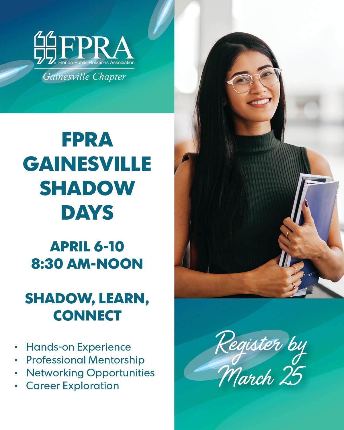 Interested in a career in public relations, marketing, or corporate communications? FPRA Gainesville Shadow Days allows you to step into the day-to-day work of a PR professional, ask questions, and gain valuable industry exposure. Apply to be a student participant.