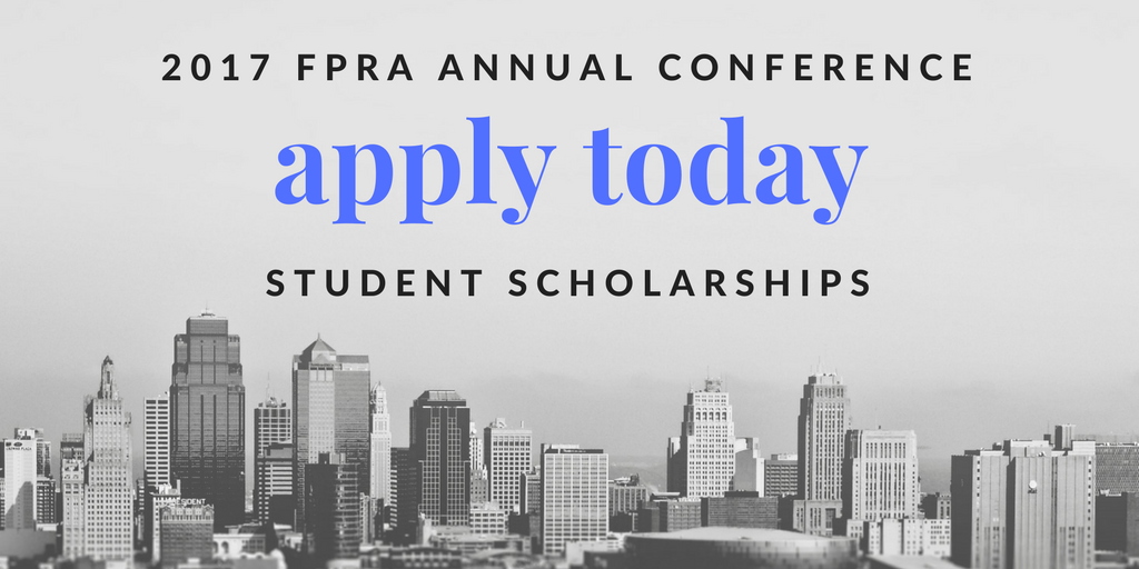 The 2017 FPRA Annual Conference will take place August 7-9 at The Ritz Carlton Orlando, Grande Lakes. All Gainesville-area students are invited to apply for one of two available scholarships that will cover the cost of a student all-inclusive registration to Annual Conference – a value of $435. If awarded a student scholarship, the scholarship will include 1) access to all conference general sessions 2) choice of breakout sessions all three days 3) food at all functions 4) a ticket to the Golden Image Awards event and 5) gas from Gainesville to Orlando for conference.